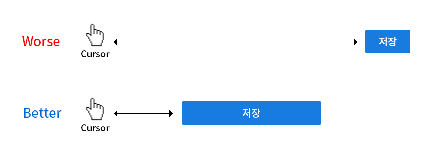(다만 작은 구성 요소를 20% 더 크게 만들면 클릭 가능성이 높아지지만, 이미 매우 큰 버튼을 20% 더 크게 만들면 유용성 측면에서 더 많은 것을 얻을 수 없다고 한다.)