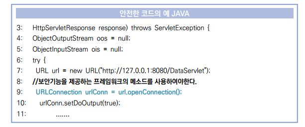타겟이 WAS로 작성될 경우 아래의 코드처럼 보안기능을 제공하는 프레임워크 메소드인 URL