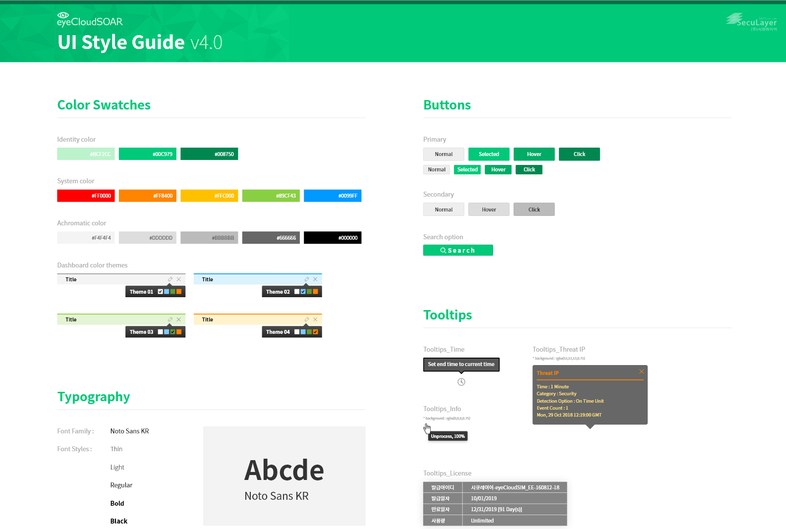디자인 토큰은 제품 및 디자인 시스템에 변경 및 확장을 위한 유연성을 제공합니다. 속성을 추가해야 하는 경우 디자인 토큰을 업데이트하기만 하면 됩니다. 예를 들어 솔루션 제품의 폰트가 Noto Sans에서 Spoqa Han Sans로 변경되면 팀은 타이포그래피 토큰만 업데이트하여 제품 전체의 변경 사항을 구현하면 됩니다.